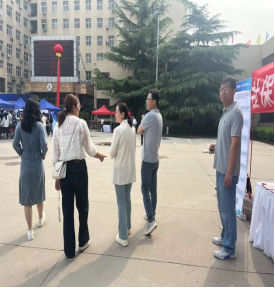 党委书记马沁芳、副院长孙日华、副院长秦玉娈、党委副书记朱晓玲、教研室主任及全体辅导员深入招聘会现场了解招聘市场现状、指导学生求职应聘。