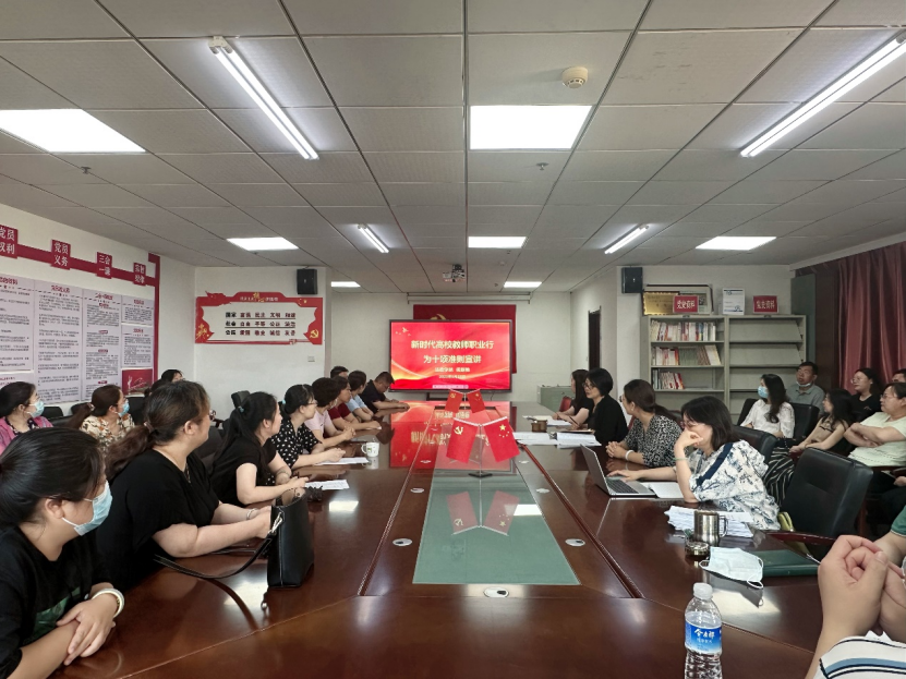 侯丽艳院长宣讲了《新时代高校教师职业行为十项准则》主要内容,她表示师风师德建设是教师队伍建设的重要一环,关乎立德树人根本任务的落实。制定教师职业行为准则,明确新时代教师职业规范,是深化师德师风建设,造就政治素质过硬、业务能力精湛、育人水平高超的高素质教师队伍的关键之举,全体教师要认真学习、反复学习,务必做到深刻理解,全面落实。