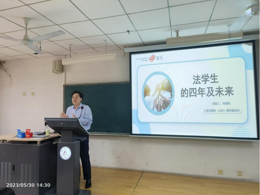 “一切法律中最重要的法律,既不是刻在大理石上,也不是刻在铜表上,而是铭刻在公民的内心里。”尚晓民律师强调,同学们要对法律长怀敬畏之心,对法律真心拥护,以行动拥护法律的尊严,才不失为一个名合格的法律人。