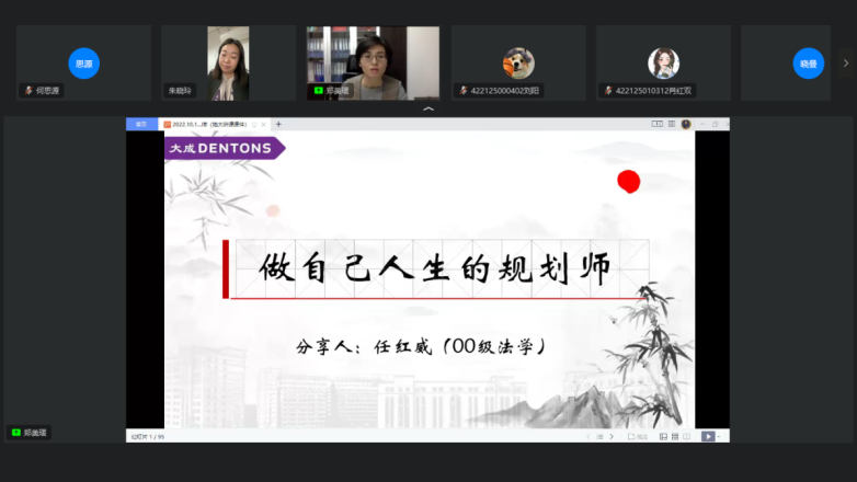 任律师结合自身经历,向同学们讲述了大学的感受,鼓励同学们利用好资源,持续自我提升。分享了从业多年的经历以及成就。并且为同学们提出了想要成为一名优秀的律师,所要具备的几种能力以及品质,支持同学们勇敢抉择,大步向前,做好人生的规划,以现状为基点,不断提升自我,磨炼心智。最后,任律师引用电影《无负今日》的话表达了对同学们的期望“知之行之,无负今日。”告诫同学们“何惧流年匆匆,但求无负今日。”把握当下,不负青春。