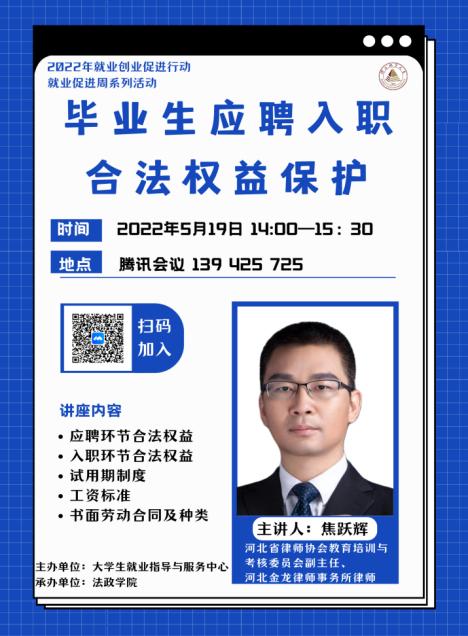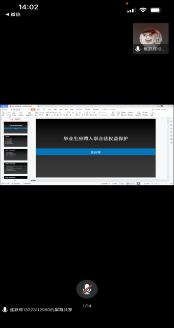 焦跃辉老师于2022年5月19日下午2点通过腾讯会议的方式召开毕业生应聘入职权益保护交流会。