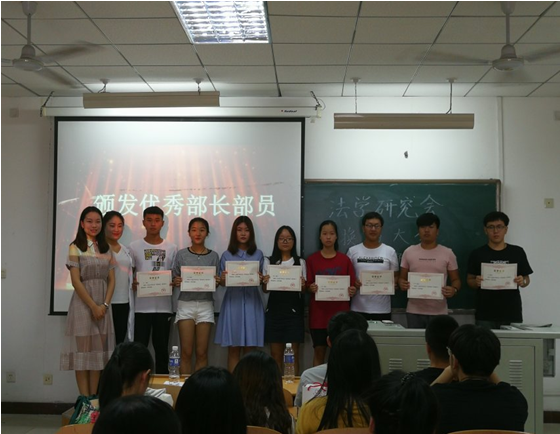 第十七届法学研究会主席王立,副主席邢宪美、陈秋鑫、刘晓阅,各部长以及17级法研全体成员参加了本次大会。