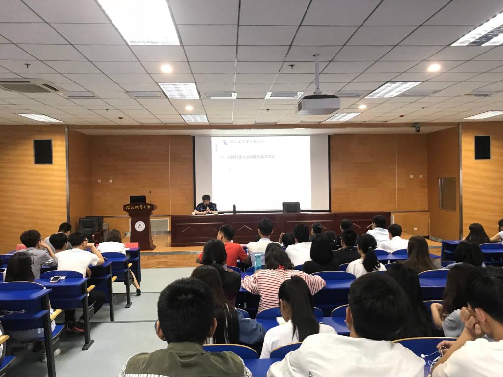 王罡律师结合自己作为市人大代表履职、参与法治活动的实例为学生们做了生动的讲解。王律师首先介绍了人民代表大会制度的基本知识,带领同学们了解人民代表大会内涵。随后,王律师介绍了人大及其常委会的四项基本职权,让同学们更加充分的了解人大,认识人大。王律师还清晰明了阐述了人民代表大会与人大常委会、和各个专门委员会的关系,让人大不再神秘。另外,王律师还向同学们分享了代表履职的基本知识,介绍了代表应该具备的基本素质。最后王律师深入地讲解了人大会议期间人大代表履职的基本情况。王律师的讲座为同学们的学业规划提供了宝贵的经验 。
