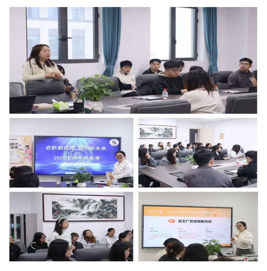 举办2026届毕业生专场招聘会,特邀河北广拓律师事务所来校开展招聘。学院党委副书记朱晓玲亲临现场指导。作为面向本届毕业生的首次专项招聘会,本场招聘会聚焦法学专业学生就业需求,搭建了毕业生与行业知名律所直接沟通的桥梁,助力学生精准对接优质岗位,有效拓展就业路径。