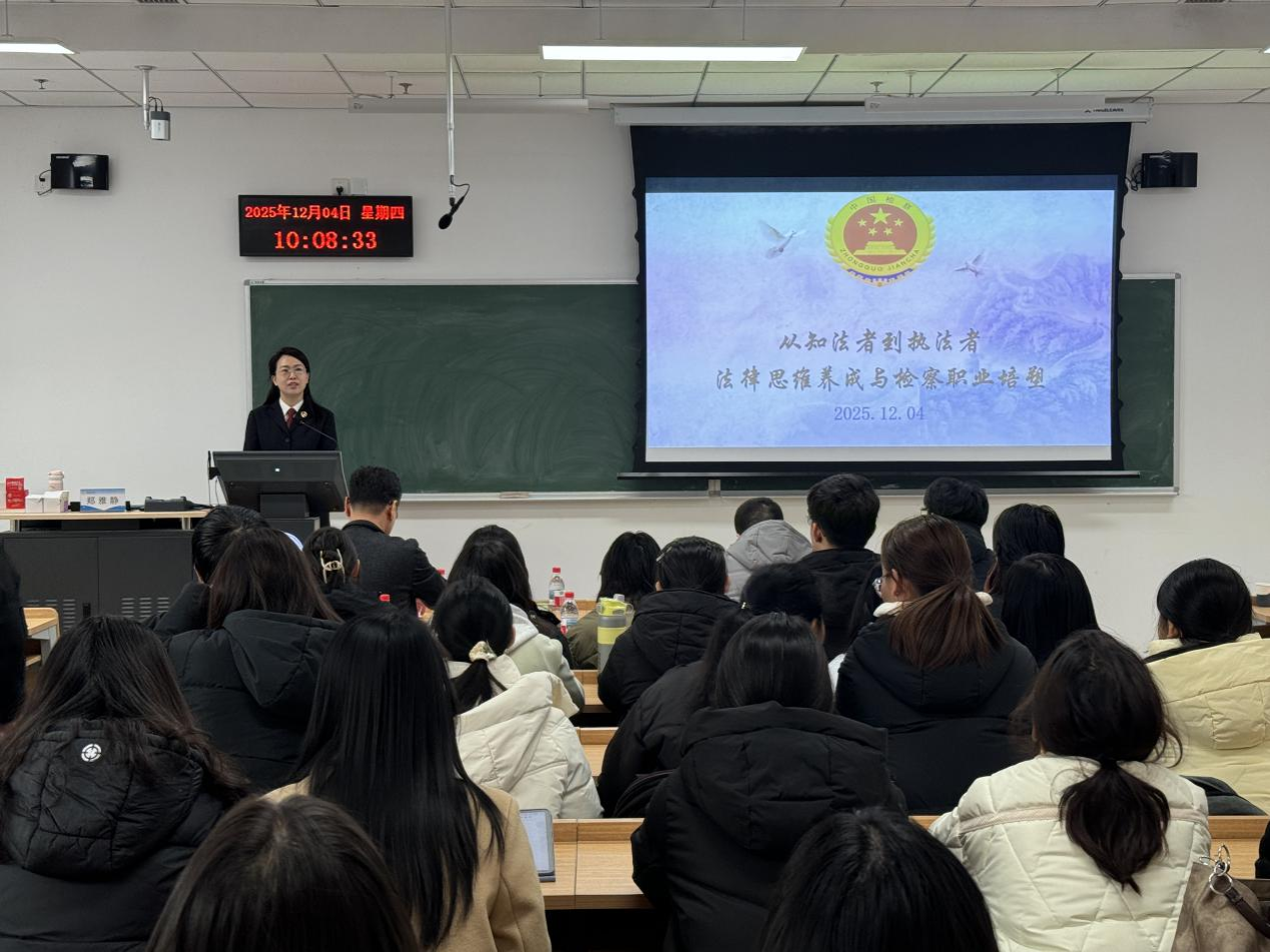 郑雅静检察官从“检察官的形象”,“法律信仰与思维”,“天理、法律、人情”和“检察办案”等四个方面以其丰富的检察一线阅历和职业经历,为同学们勾勒出法律人从理论到实践的成长路径。她结合典型案例的精品案件,深入浅出地剖析了案件审查、证据把握、法律适用中的关键思维节点,生动展示了检察官在办案中应有的思维和能力。最后寄语同学们“人生万事须自为,跬步江山即寥廓”,鼓励同学们要始终追求进步,树立远大目标和职业理想,只有脚踏实地,一步一个脚印向前走,才有可能抵达胜利的彼岸。互动环节同学们纷纷表示,将以此次讲座为契机,更加注重法律思维的日常培养,积极规划职业路径,努力成长为兼具理论素养与实践能力的新时代法治人才。