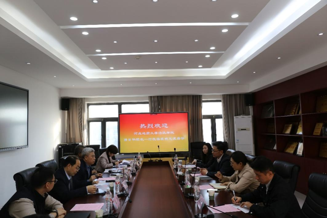 院长孙日华、公共管理系主任王丽慧、环保法教研室主任葛丽明、科研办公室主任刘天祥一行四人赴河北师范大学法政与公共管理学院进行调研交流。