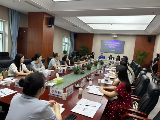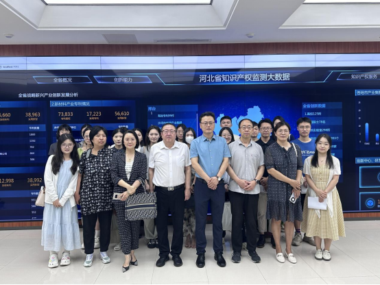 孙日华副院长与四位法学方向硕士导师李慧英、葛丽明、王育红、历建明带领张秋君、曾科、商庭瑚、罗亚坤、陈云云、郭丹阳等20位法学研究生前往河北省知识产权保护中心进行实地调研和座谈交流。