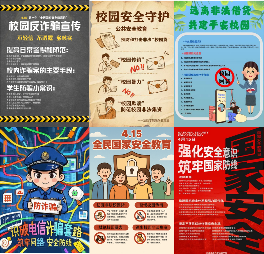 2024级的同学们积极响应,以“海报”为独特载体,围绕公共安全教育、预防非法校园贷、抵制校园传销、反对校园暴力与校园欺凌、防范校园非法集资等重要议题,精心创作了一系列优秀作品。各班充分发挥创意,用一幅幅精美的海报深刻诠释了对校园安全的理解与关注。