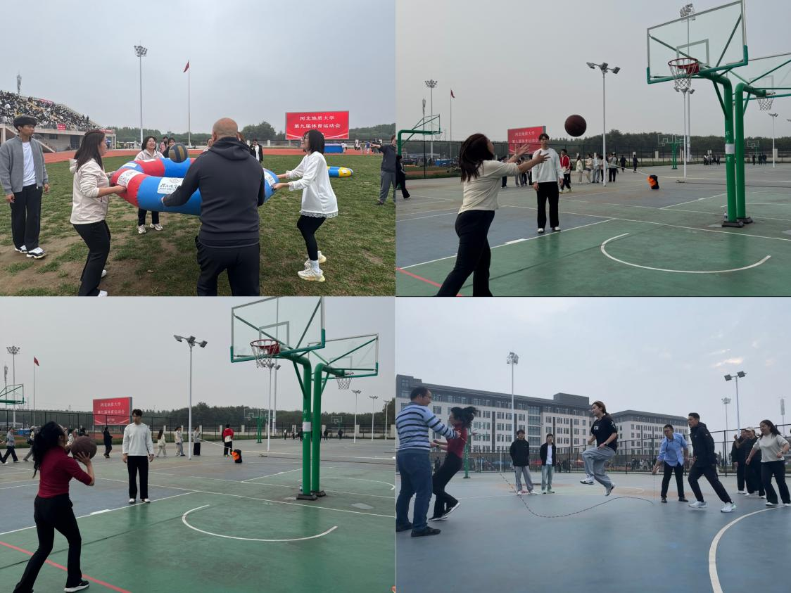 教职工队伍以拼搏为笔,在赛场上书写榜样力量。篮球赛场,他们默契传接、攻防协作,每一次配合都彰显团队精神;趣味项目中,他们携手闯关、互帮互助,每一步前进都凝聚协作力量,一举一动皆充满力量,成为赛场中热血与温暖交织的独特风景。佳绩频传,荣耀定格:2024级辅导员陈苏怡在教工组女子三级跳远赛场一骑绝尘,以3.2米的优异成绩斩获冠军;教工组混合50米接力赛,老师们凭借高效配合斩获亚军;混合跳绳、足球射门项目分别取得第四的好成绩;男子上篮团体接力第二、刘天祥老师200米、王峰老师足球颠球项目均获亚军;王武青老师在铅球项目中获第四,慢速自行车项目获第六。老师们在赛场上的飒爽英姿,不仅展现了个人风采,更让团结的力量穿透赛场,为学子们树立了奋勇拼搏、携手共进的鲜活榜样。