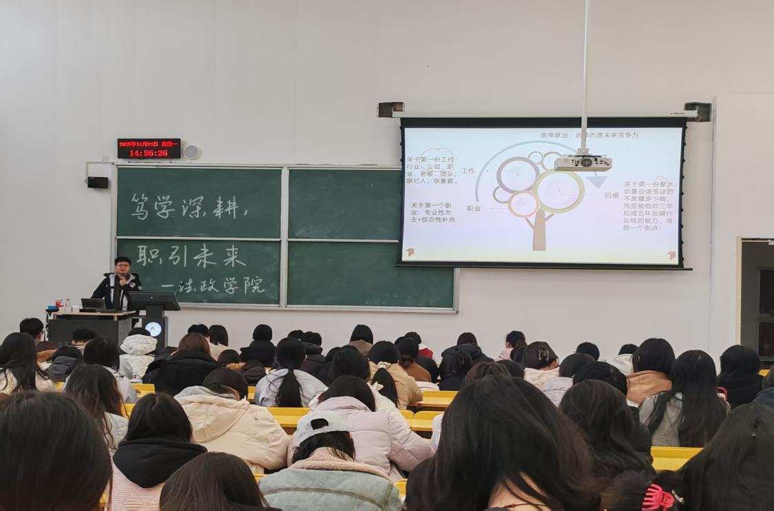 举办“笃学深耕,职引未来”讲座,由学院研究生赵永乐结合自身实践经历,围绕就业、考公、考研三大核心为同学们带来了一场干货满满的分享。针对就业,他从自身经历出发,建议同学们积累实践经验,在简历中突出核心竞争力,同时注重面试中的沟通逻辑与心态调整。针对考研规划,结合考研的报考趋势,从院校选择、复习方法等方面提供了具体建议。针对考公,结合备考经历,详细拆解了考公流程、岗位选择、备考计划等关键内容,考公需兼顾“政策解读”与“能力提升”,建议同学们密切关注招考公告,根据自身条件筛选岗位,同时制定科学的备考计划,分阶段攻克行测、申论重点难点。