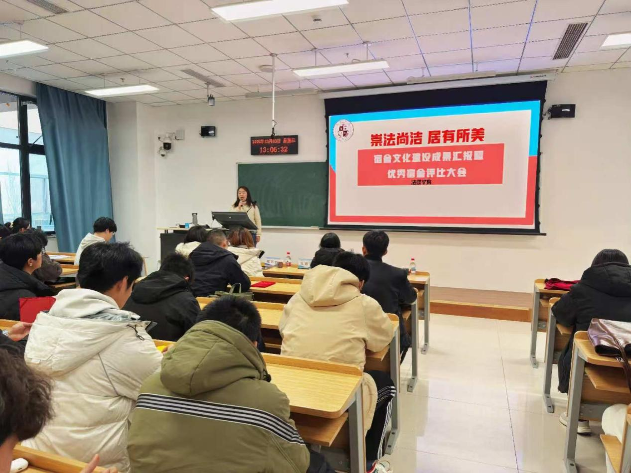 成功举办“崇法尚洁,居有所美”宿舍文化建设成果汇报暨优秀宿舍评比大会。学院党委副书记朱晓玲、各年级辅导员及学生代表共同参加。