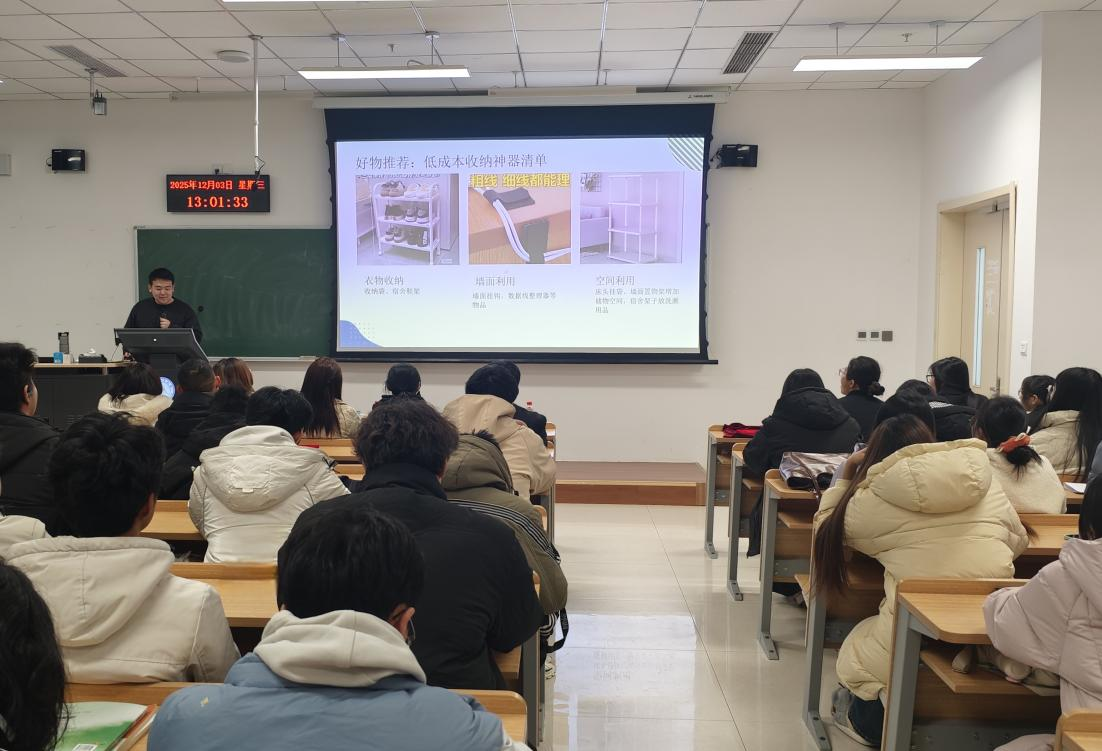 经验分享环节中,2022级优秀宿舍学生代表张文哲和2024级优秀宿舍学生代表韩泓图分别从营造“勤学共进”的宿舍学风、实践科学有序的收纳整理等不同角度,分享了建设优秀宿舍的宝贵经验和具体做法,为同学们提供了可借鉴、可操作的实践路径。