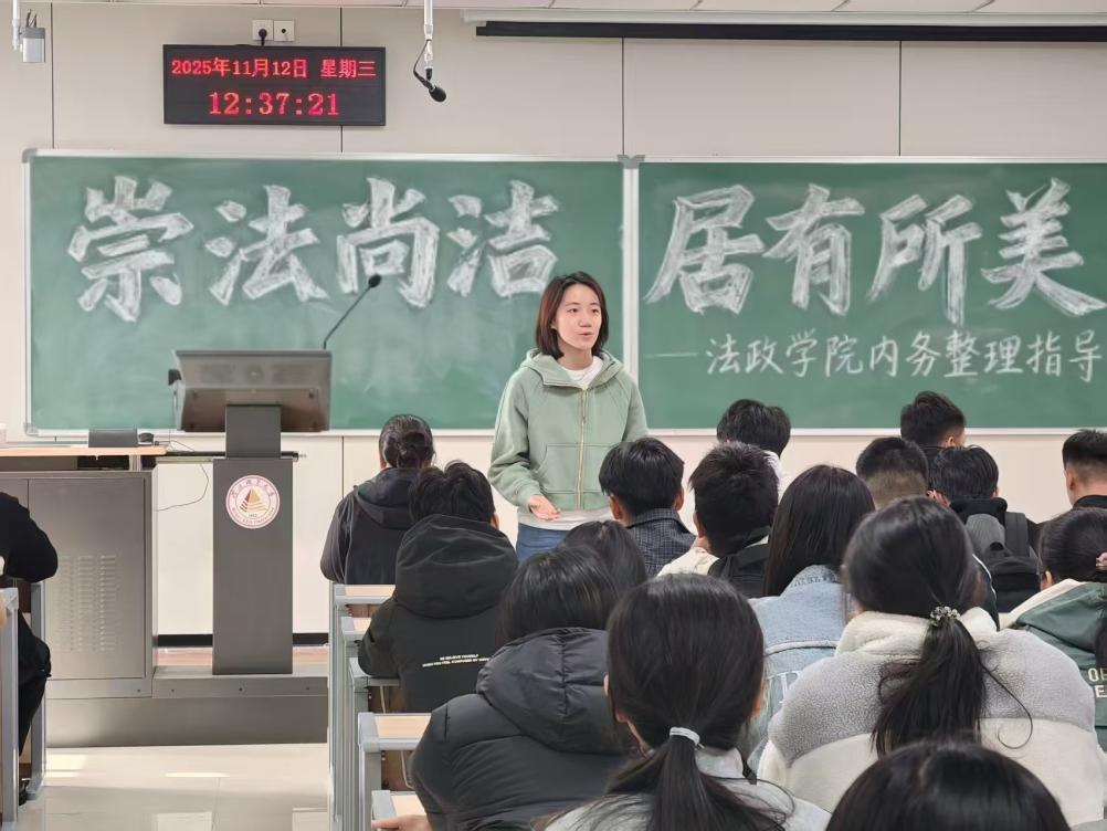 最后,朱晓玲作总结致辞。她对本次评比大会的成功举办及获奖宿舍表示祝贺,肯定了同学们在宿舍文化建设中取得的成果,并希望全体同学能将“崇法尚洁,居有所美”的理念内化于心、外化于行,将宿舍真正打造成思想引领的阵地、文化育人的平台和心理支持的港湾,共同建设和谐、文明、温馨的社区家园。