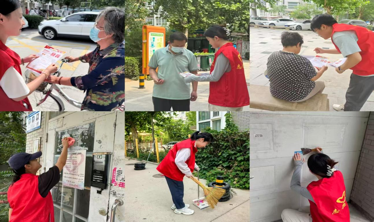 另一组同学则化身“城市美容师”,组成“牛皮癣”清除小分队。他们携带喷壶、铲刀、钢丝球、抹布等工具,重点清理社区单元门、楼道墙面、电线杆及公共宣传栏上的层层张贴、难以清除的各类小广告,同学们分工协作:有的用喷壶仔细喷水浸湿,有的小心翼翼地用铲刀一点点刮除,有的则用钢丝球和抹布奋力擦洗残留的胶痕。大家耐心细致、一丝不苟,或半蹲、或踮脚,不放过任何一处“城市斑点”,努力还社区公共空间以清爽面貌。他们专注投入的身影和显著的清理效果,赢得了过往社区居民的驻足观看与连连称赞。